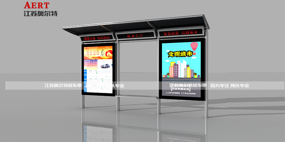 | 候車亭尺寸 | 一大一小尺寸:寬7米,高2.9米,寬1.5米(mǐ) 二大一小尺寸:寬12米,高2.9米,寬1.5米(mǐ) 三大一小尺寸:寬17米,高2.9米(mǐ),寬1.5米 標準大燈箱尺寸:寬3.65米,高1.8米 標準小燈箱尺寸:寬1.2米,高1.8米 注:可根據客戶需求進行定製,采用模塊化設計,組合方式靈活多變。 |