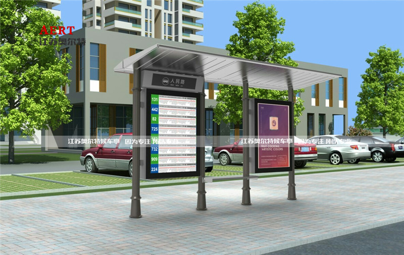 3 .遮擋。在多雨和炎熱的天氣(qì)下,公交候車亭要有遮擋頂棚。在設計頂棚時要考慮到(dào)頂棚的高度和覆蓋(gài)麵積(jī)、所能容納的人數、遮擋(dǎng)所(suǒ)采用的方式、遮擋所(suǒ)用材質的透(tòu)光度(dù)等問題。