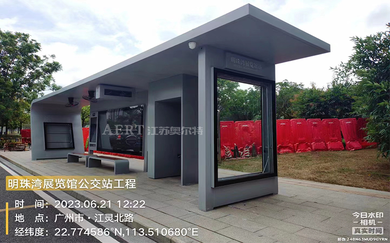 噔噔噔噔 由宿遷候車亭廠家江(jiāng)蘇香蕉丝瓜草莓秋葵小猪IOS污廣告設備有(yǒu)限公司生產製造的帶有智能風扇的公交站台(tái)上線啦。就算比不上透心涼的空調,