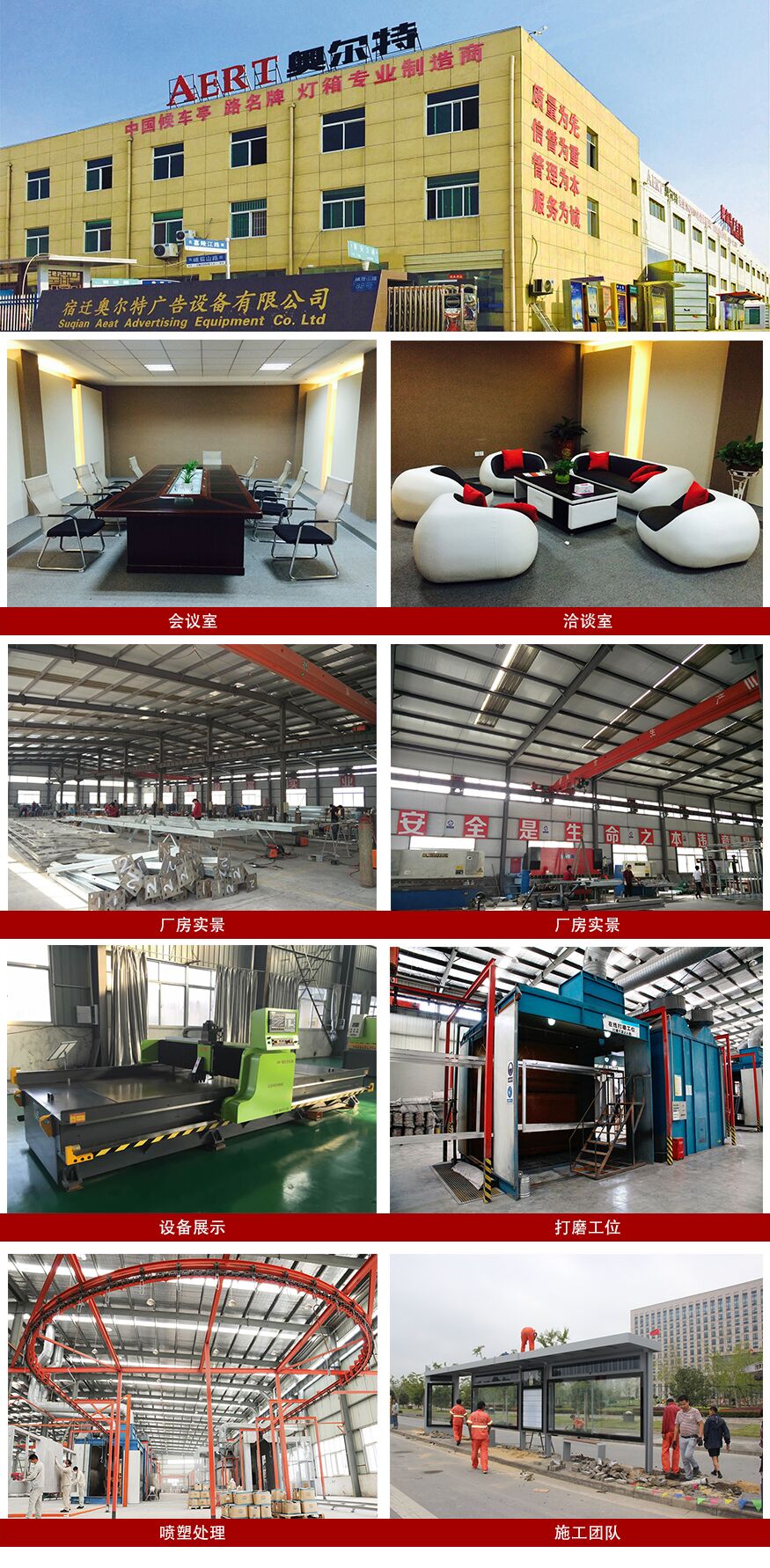 二、在硬件實力方麵,宿遷(qiān)市香蕉丝瓜草莓秋葵小猪IOS污廣告設備有限公司占地近兩萬平方米,擁有光纖激光切(qiē)割機、數控(kòng)剪(jiǎn)板機、數控衝孔機床、大型折彎機、吸塑機、工(gōng)業塗裝流(liú)水線、烤漆房等各(gè)種生產設備,能夠完成各種(zhǒng)規格候車亭的生產任務,截至目前客戶已超(chāo)過500多家,遍及國(guó)內所有省份。