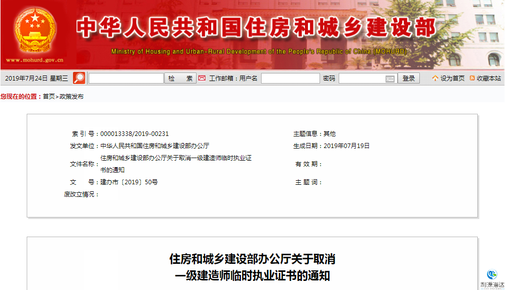 關(guān)於取消一級建造師臨時(shí)執業證書的通知