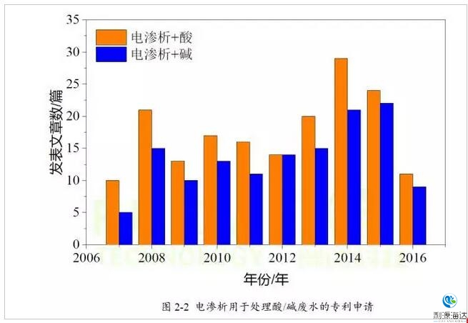 從檢索結果可知,有關電滲析技(jì)術在含酸/堿溶液方麵(miàn)的應用,發表的文章也不多,但呈(chéng)現(xiàn)出增多(duō)的趨勢。