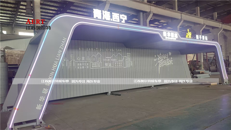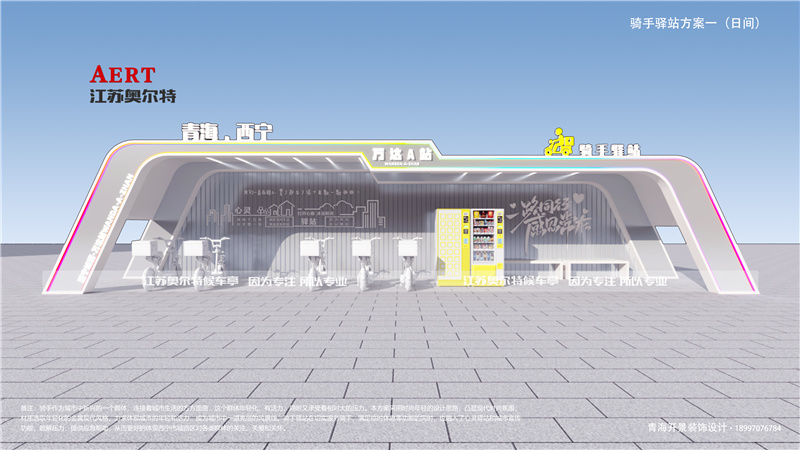 这是青海西宁新华联站的骑手驿站(zhàn)候车亭,属于为外卖/快递(dì)骑手打造的户外劳动者服务设施,并非此前提(tí)及的骑行爱好者驿站。结合图片特征和西宁骑手(shǒu)驿站的建设背景。